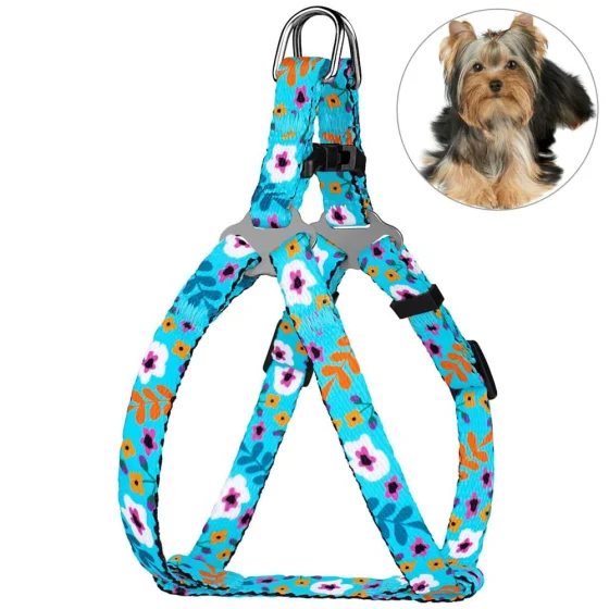 Шлея BronzeDog Tribal для собак, нейлон, принт квіти, ментоловий, 40-53 см