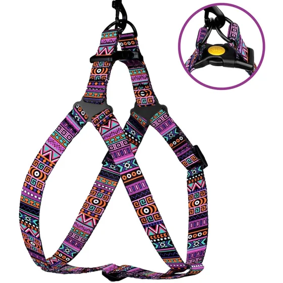 Шлея BronzeDog Tribal для собак, нейлон, принт етнічний, фіолетовий, 40-53 см