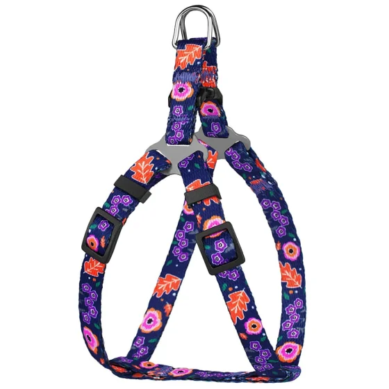 Шлея БронзДог Urban для собак і котів, нейлон, принт квіти, синій, 24-30 см