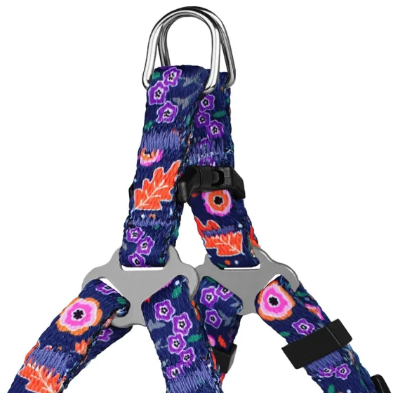 Шлея BronzeDog Urban для собак, нейлон, принт квіти, синій, 24-30 см