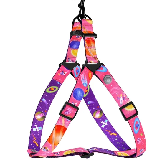 Шлея BronzeDog для собак, нейлон, принт космос, рожевий, 40-53 см