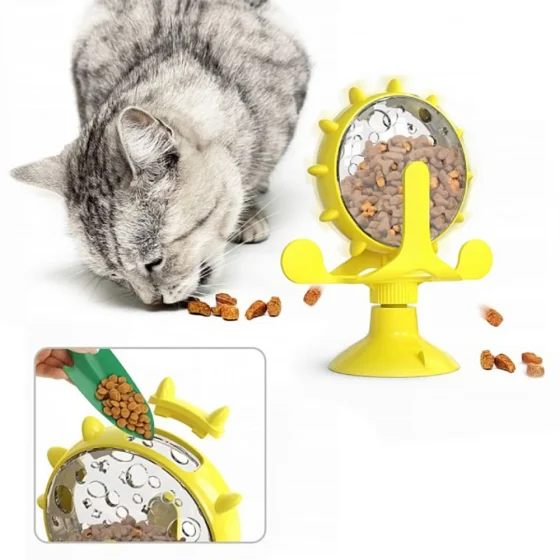 Іграшка-годівниця для котів BronzeDog PetFun, на присосці, жовтий, 14×17 см