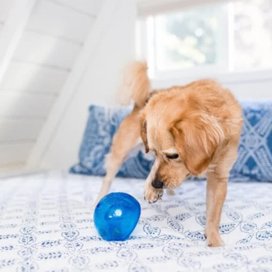 Ця інтерактивна головоломка з диспенсером для ласощів надовго заволодіє увагою вашого собаки, змусить його мозок працювати та заохотить до самостійної гри. Для початку гри витягніть вузьку частину (горлечко) з середини іграшки та заповніть улюбленими ласощами вашого собаки, після чого поверніть горлечко в початкове положення. Тепер, коли іграшка готова, покладіть її на підлогу та спостерігайте, як вихованець вирішує задачу, як дістати ласощі із середини. Ви можете ускладнити, або навпаки полегшити завдання за допомогою розміру шматочків, які ви кладете всередину. Рівень складності завдання залежить тільки від вас!