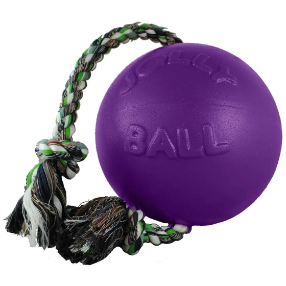 Іграшка Jolly Pets Romp-n-Roll м'яч з канатом, середня, для собак 9-27 кг, фіолетова, 16 см