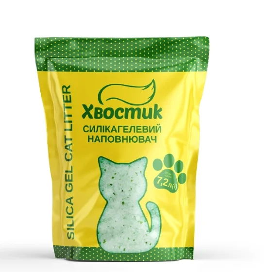 Силікагель наповнювач Хвостик для котів, із зеленими гранулами, дрібна фракція, 7.2 л