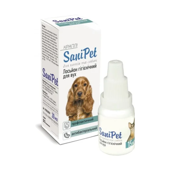 Лосьйон Природа SaniPet краплі для вух котів і собак, 15 мл