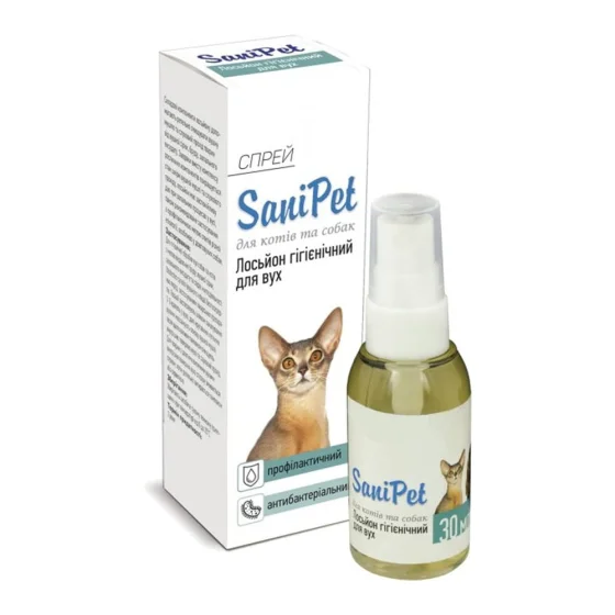 Лосьйон Природа SaniPet спрей для вух котів і собак, 30 мл