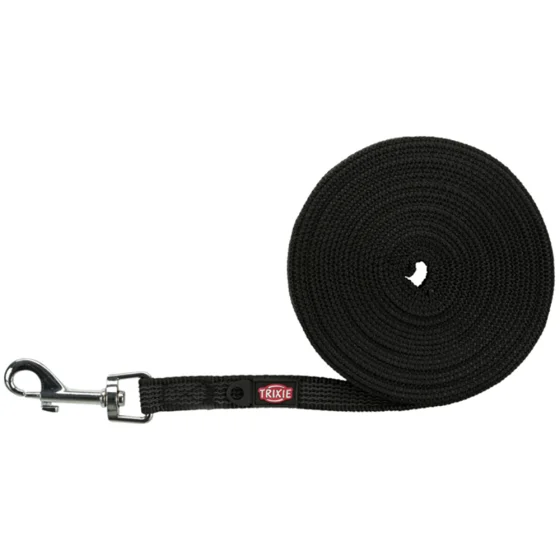 Повідець Trixie Tracking Lead прогумований для собак, без петлі, розмір S-M, 5 м/15 мм, чорний