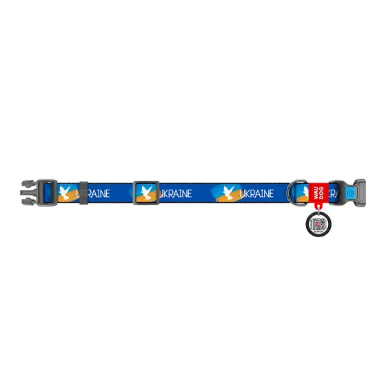 Нашийник Waudog Nylon з QR-паспортом для собак, малюнок "Прапор", нейлон/пластик, розмір M, 20 мм/24-40 см