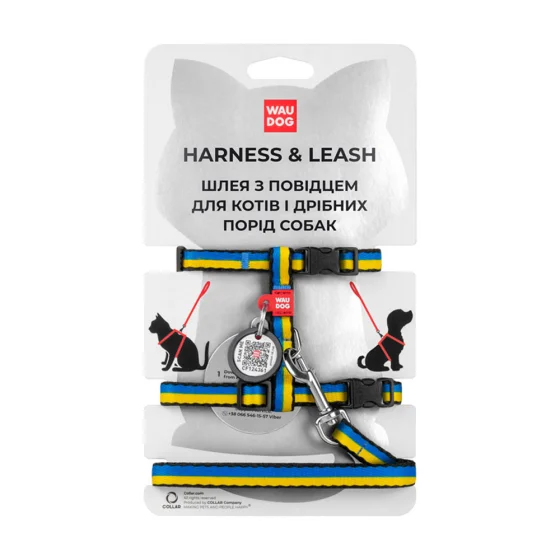 Шлея з повідцем Waudog Nylon для котів, малюнок "Colors of freedom", нейлон/пластик, розмір XS, 20-30/25-40 см