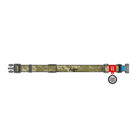 Нашийник Waudog Nylon з QR-паспортом для собак, малюнок "Мілітарі", нейлон/пластик, розмір M, 20 мм/29-40 см