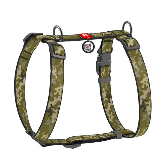 Шлея Ваудог Nylon з QR-паспортом для собак, анатомічна, малюнок "Мілітарі", розмір M, 40-70/50-80 см