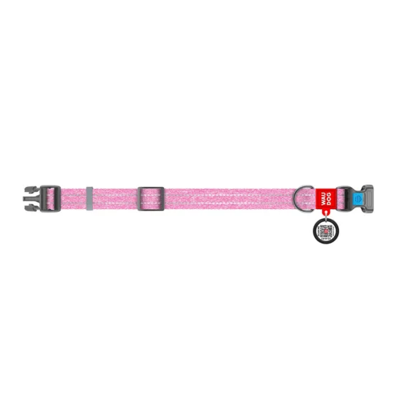 Нашийник WAUDOG Re-cotton для собак, з QR паспортом, бавовна/пластик, M, 20 мм/24-40 см, рожевий