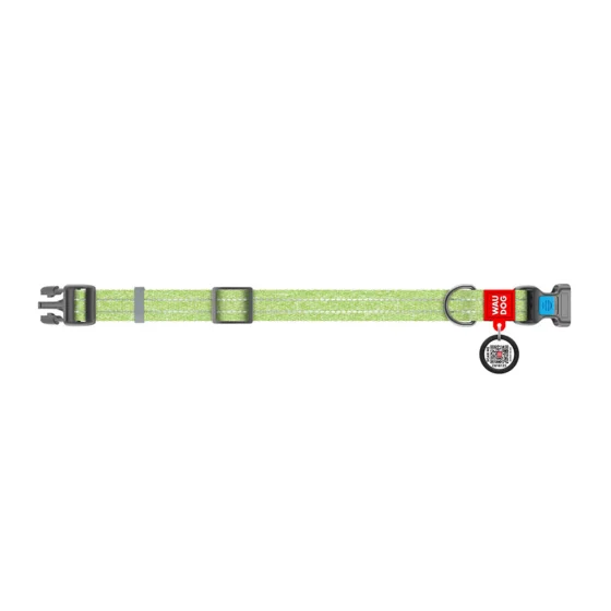Нашийник WAUDOG Re-cotton для собак, з QR паспортом, бавовна/пластик, S, 15 мм/23-35 см, салатовий