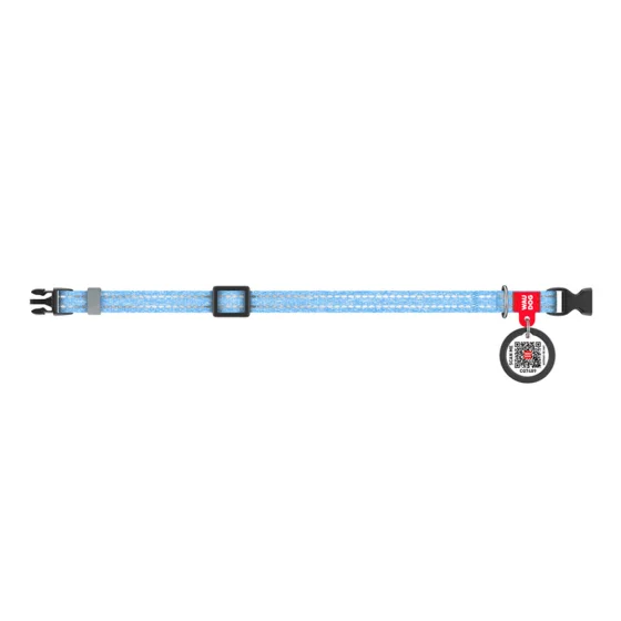 Нашийник світловідбиваючий WAUDOG Re-cotton для котів та собак, бавовна/пластик, XS, 10 мм/20-30 см, блакитний