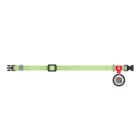 Нашийник світловідбиваючий WAUDOG Re-cotton для котів та собак, бавовна/пластик, XS, 10 мм/20-30 см, салатовий