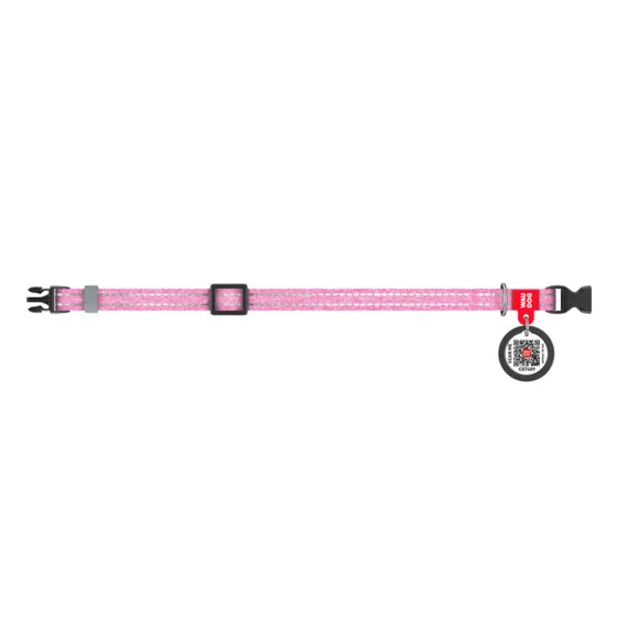 Нашийник світловідбиваючий WAUDOG Re-cotton для котів та собак, бавовна/пластик, XS, 10 мм/20-30 см, рожевий