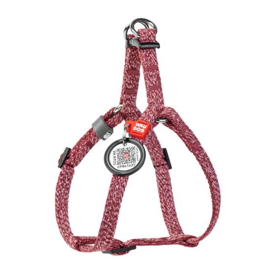 Шлея світловідбиваюча WAUDOG Re-cotton для котів та собак, бавовна/пластик, XS, 10 мм/28-40 см, червоний