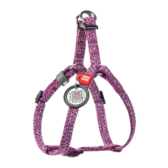 Шлея світловідбиваюча WAUDOG Re-cotton для котів та собак, бавовна/пластик, XS, 10 мм/28-40 см, фіолетовий