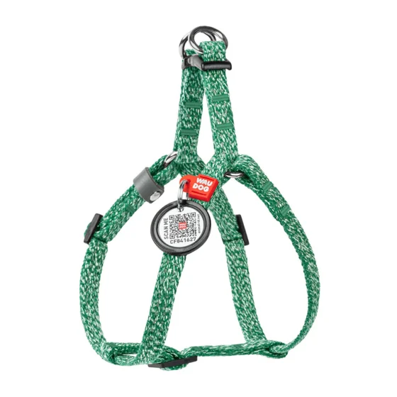 Шлея світловідбиваюча WAUDOG Re-cotton для котів та собак, бавовна/пластик, XS, 10 мм/28-40 см, зелений