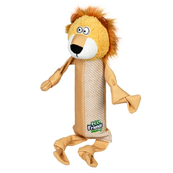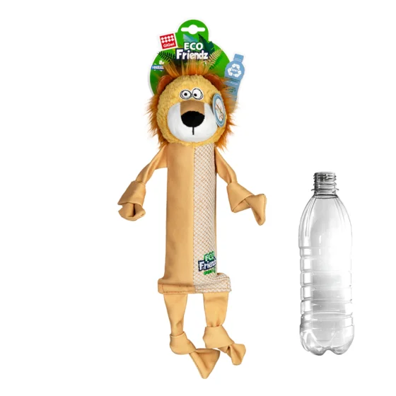 Іграшка GiGwi Eco Friendz Лев із пластиковою пляшкою та пищалкою для собак, перероблений текстиль, ПЕТ, L, 39 см