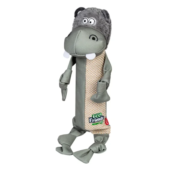 Іграшка GiGwi Eco Friendz Бегемот із пластиковою пляшкою та пищалкою для собак, перероблений текстиль, ПЕТ, L, 39 см
