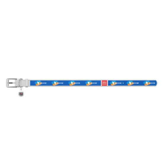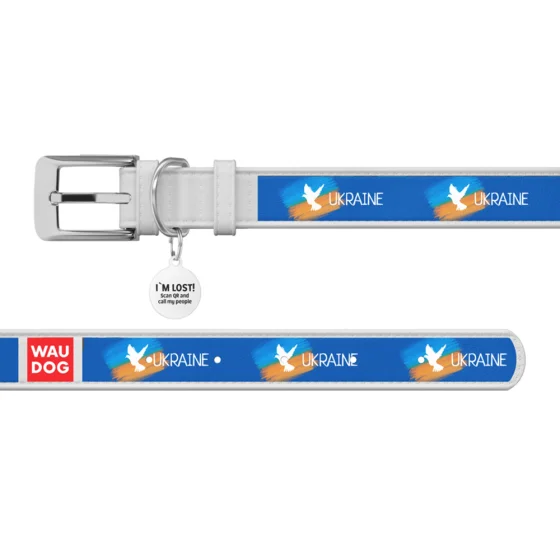 Нашийник шкіряний Waudog Design з QR паспортом для собак, малюнок "Прапор", M,20мм/29-38 см, білий