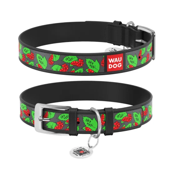 Нашийник WAUDOG Design з QR паспортом малюнок "Калина" для собак шкіряний, S, Ш 15 мм, Дов 26-35 см, чорний