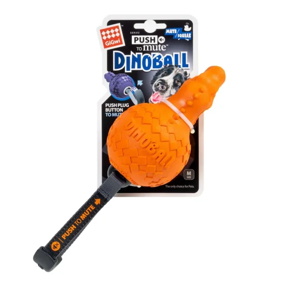 Іграшка для собак "Дінобол Т-рекс" зроблена з високоякісної гуми у вигляді динозавра. Призначена для середніх та великих порід собак. При натисканні видає звук. Можна вмикати та вимикати звук залежно від ситуації. Щоб вимкнути звук – необхідно вставити пальцем всередину іграшки, щоб увімкнути – потягти за ремінець. Іграшка підходить для активної гри.