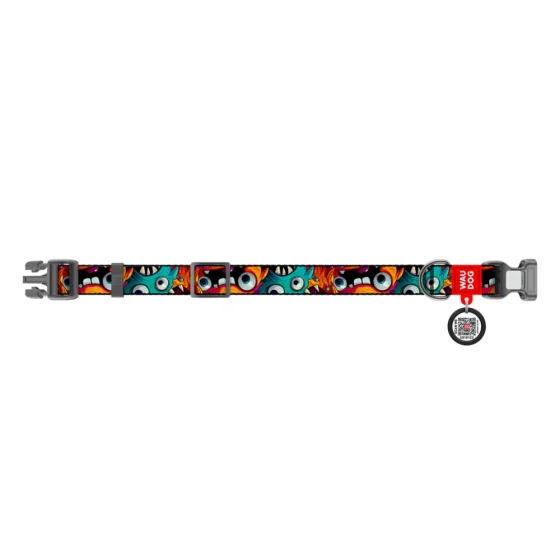 Нашийник Waudog Nylon з QR паспортом для собак нейлоновий, малюнок "Зубасті монстри", пластиковий фастекс, S, ширина 15 мм, довжина 25-35 см