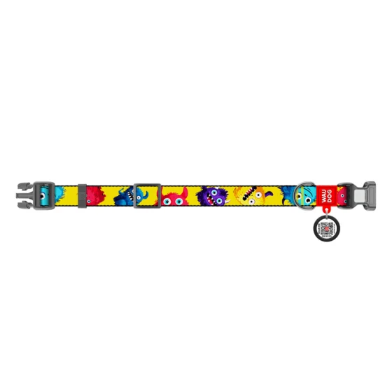 Нашийник Waudog Nylon з QR паспортом для собак нейлоновий, малюнок "Мохнаті монстри", S, ширина 15 мм, довжина 25-35 см