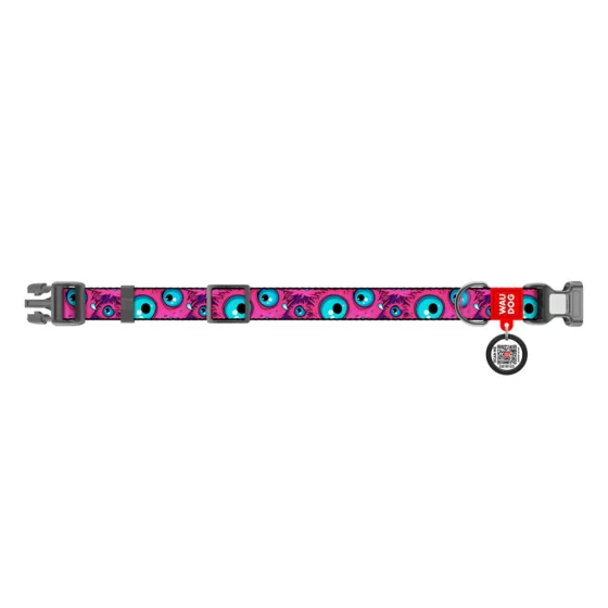 Нашийник Waudog Nylon з QR паспортом для собак нейлоновий, малюнок "Око монстра", М, ширина 20 мм, довжина 28-40 см