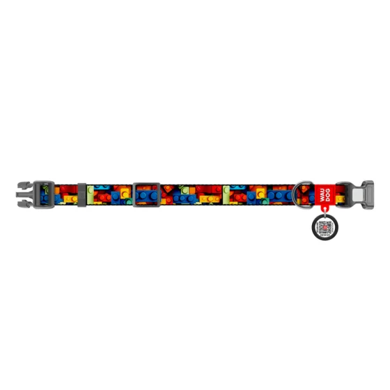 Нашийник Waudog Nylon з QR паспортом для собак нейлоновий , малюнок "Блоки", пластиковий фастекс, М, ширина 20 мм, довжина 28-40 см