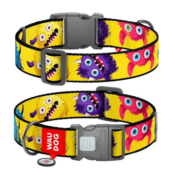 Нашийник Waudog Nylon з QR паспортом для собак, малюнок "Мохнаті монстри", пластиковий фастекс, нейлоновий, XXL, ширина 35 мм, довжина 46-70 см