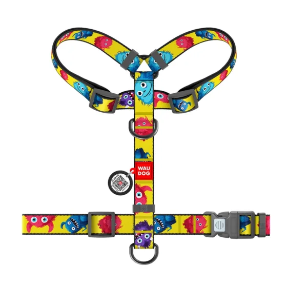 Шлея анатомічна H-подібна Waudog Nylon для собак з QR-паспортом, малюнок "Мохнаті монстри", S, Ш 15 мм, A 30-40, B 30-50