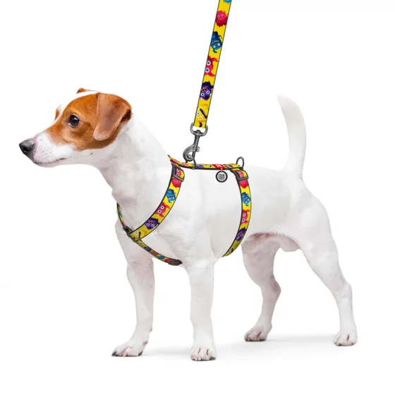 Шлея анатомічна H-подібна Waudog Nylon для собак з QR-паспортом, малюнок "Мохнаті монстри", М, Ш 20 мм, А 40-70, В 50-80
