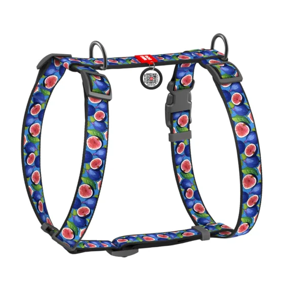 Шлея анатомічна H-подібна Waudog Nylon для собак з QR-паспортом, малюнок "Інжир", М, Ш 20 мм, А 40-70, В 50-80