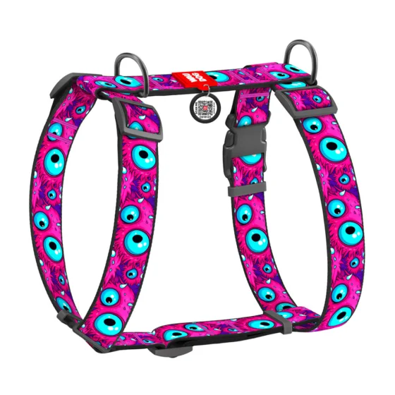 Шлея анатомічна H-подібна Waudog Nylon для собак з QR-паспортом, малюнок "Око монстра", пластиковий фастекс, XL, Ш 35 мм, А 55-95 см, В 70-110 см