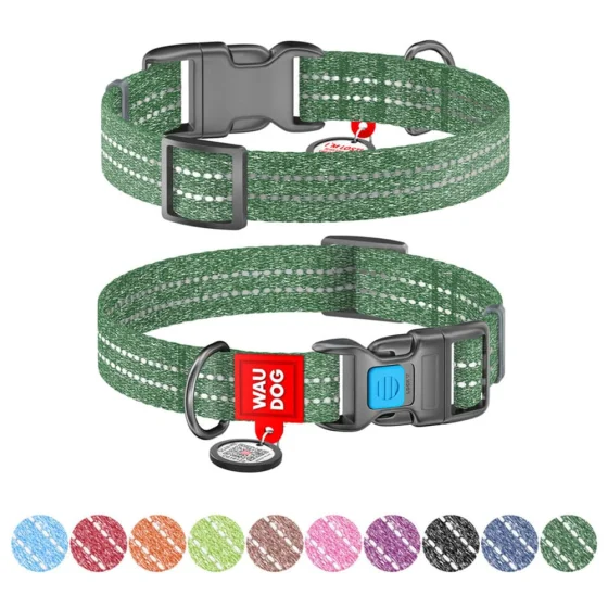 Нашийник Waudog Re-cotton для собак, з QR паспортом, бавовна/пластик, світловідбиваючий, ширина: 15 мм, довжина: 25-35 см, зелений