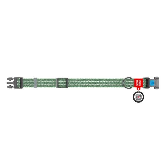 Нашийник Ваудог Re-cotton для собак, з QR паспортом, бавовна/пластик, світловідбиваючий, ширина: 15 мм, довжина: 25-35 см, зелений