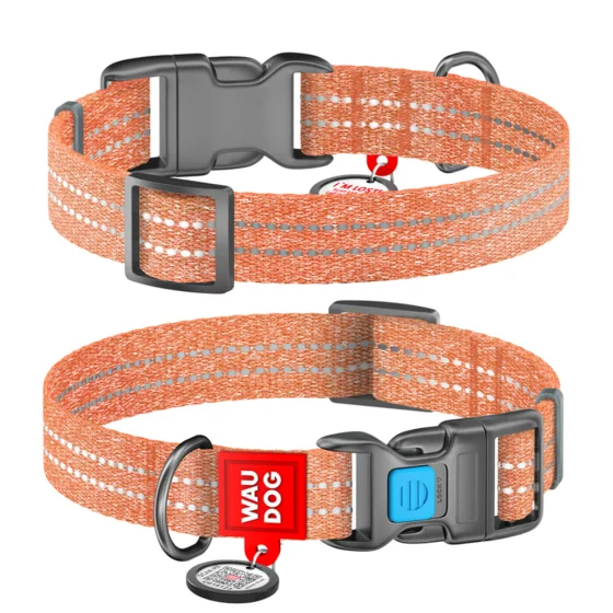 Нашийник Ваудог Re-cotton для собак, з QR паспортом, бавовна/пластик, світловідбиваючий, ширина: 15 мм, довжина: 25-35 см, помаранчевий
