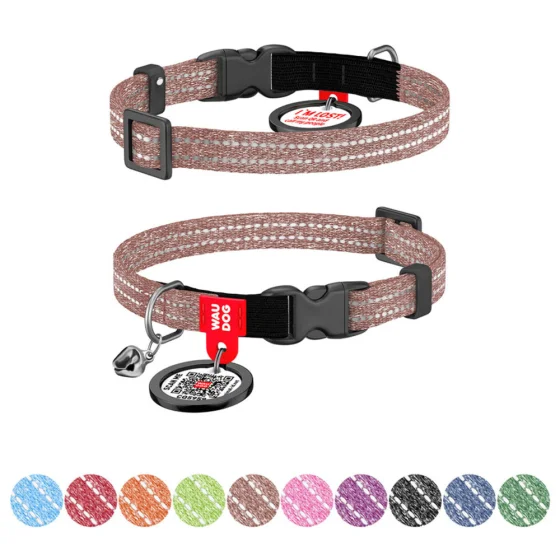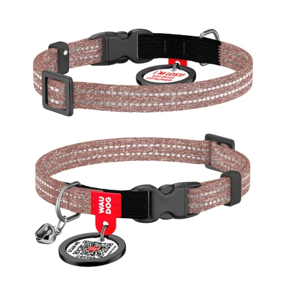 Нашийник Waudog Re-cotton з QR паспортом для котів, світловідбиваючий, пластиковий фастекс, XS, Ш: 10 мм, Д: 20-30 см, коричневий