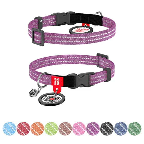 Нашийник Waudog Re-cotton з QR паспортом для котів, світловідбиваючий, пластиковий фастекс, XS, Ш: 10 мм, Д: 20-30 см, фіолетовий