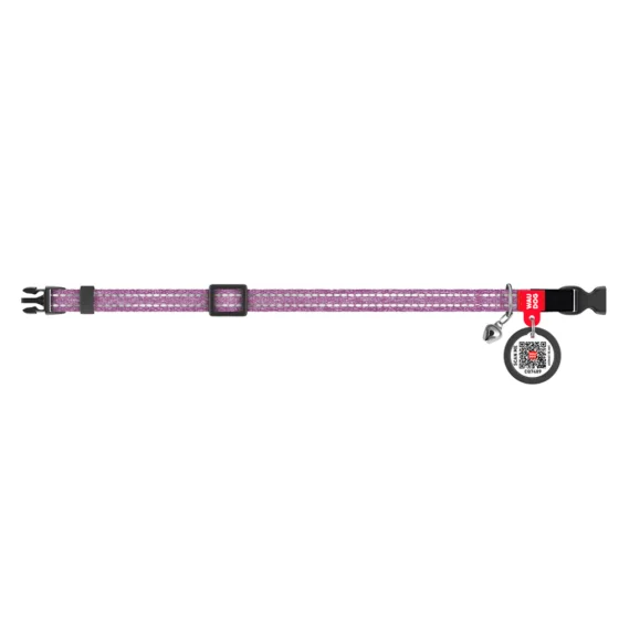 Нашийник Ваудог Re-cotton з QR паспортом для котів, світловідбиваючий, пластиковий фастекс, XS, ш 10 мм, д 20-30 см, фіолетовий