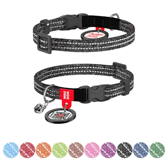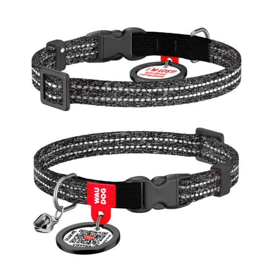 Нашийник Waudog Re-cotton з QR паспортом для котів, світловідбиваючий, пластиковий фастекс, XS, Ш: 10 мм, Д: 20-30 см, сірий