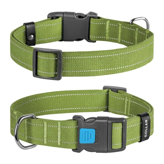 Нашийник CoLLaR виготовлений зі щільної брезентової тканини та прошитий світловідбивною ниткою. Пластиковий фастекст зробить використання даного нашийника зручним та допоможе уникнути його мимовільному розкриттю.