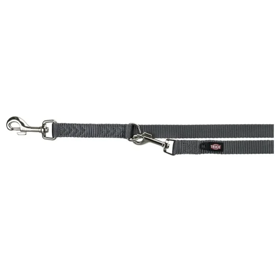 Повідець-перестіжки Trixie Premium для собак, 2 карабіни, нейлон, подвійний, 2 м х 15 мм, сірий