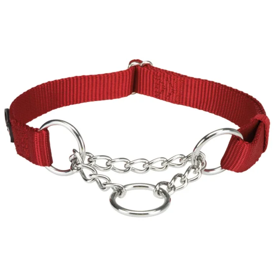 Нашийник-зашморг Trixie Premium червоного кольору створений для безпечного контролю собаки під час прогулянок. Модель виготовлена з міцного нейлону та металевого ланцюга, що дозволяє легко регулювати довжину під розмір шиї вашого вихованця.
