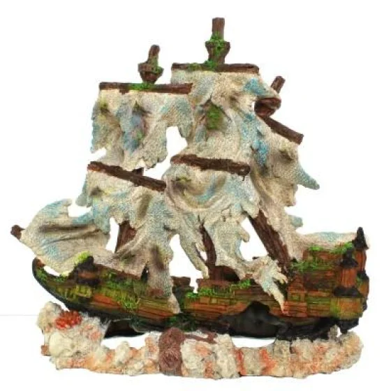 Декорация Yusee Кораблекрушения (ys201034) 31x14x29см это заброшенный и разбитый фрегат - трехмачтовый парусик. м испанского трехмачтового отряда для скота.